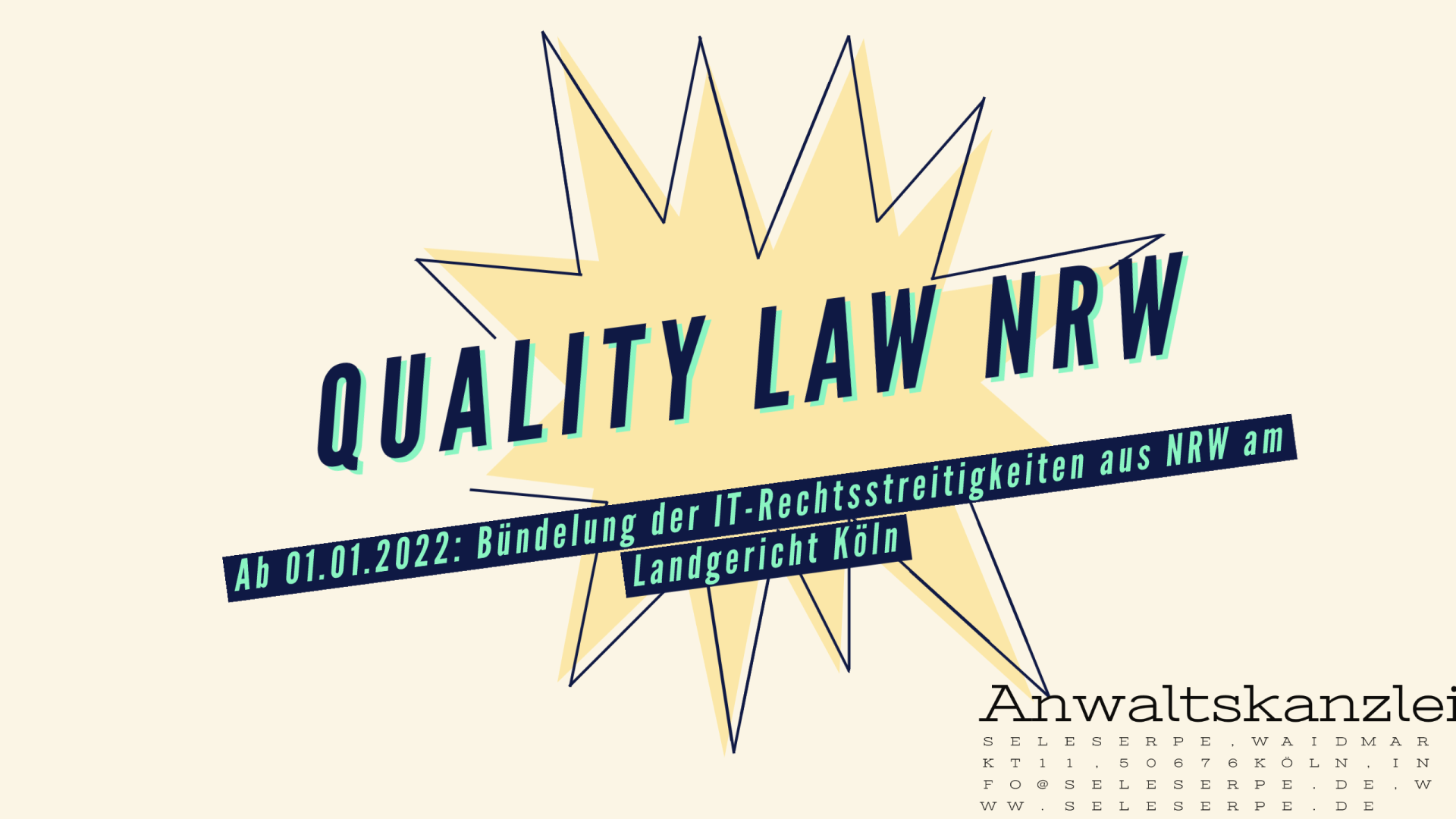 Die neuen spezialisierten Spruchkörper des Landgerichts Köln: Seit dem 01.01.2022 sind die 33. und die 14. Zivilkammer des Landgerichts Köln für alle Streitigkeiten aus ganz Nordrhein-Westfalen in der Kommunikations- und Informationstechnologie ab einem Streitwert von 100.000,- € zuständig. Diesbezügliche Berufungsinstanzen sind die Zivilsenate 19 und 6 des OLG Köln.